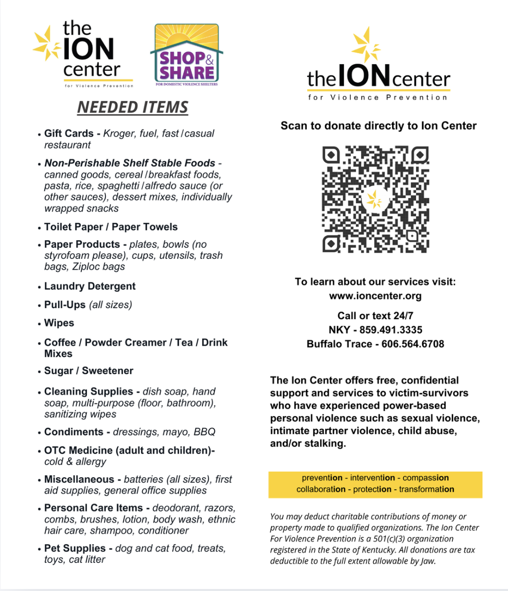 2026 Shop & Share Shopping List for The Ion Center for Violence Prevention