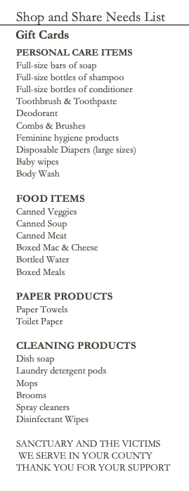 2026 Shop & Share Shopping list for Sanctuary, Inc.