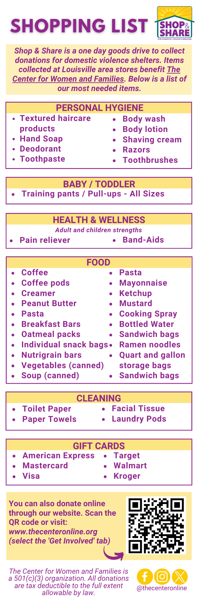 2026 Shop & Share Shopping List for CWF